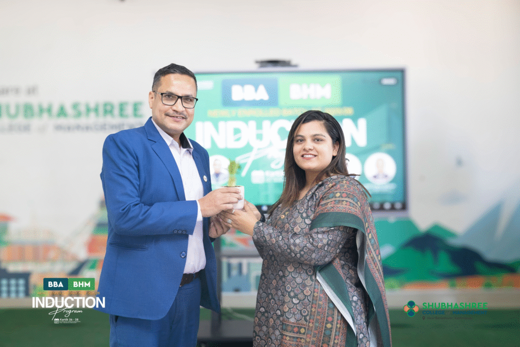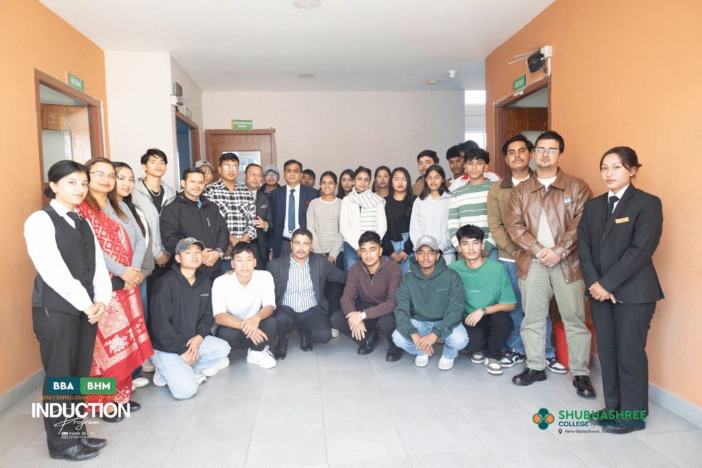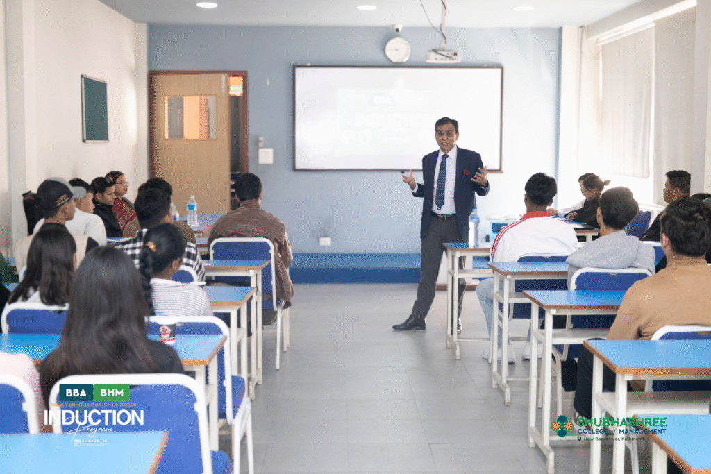 Day 2 of the BBA and BHM Induction Program at Shubhashree College of Management was filled with insightful sessions, motivating interactions, and meaningful introductions to the departments and clubs that shape student life on campus. BBA students began their day with an engaging guest session by Mr. Indra R. Subedi, followed by presentations from the Event Masters Club, Sports Club, and Community Club, along with informative sessions from the Accounts Department and the Library Officer. Similarly, BHM students gained valuable perspectives from a powerful guest session by Mr. Yadav Pd. Pandey, and continued with presentations from the Manager of College Affairs, IT Department, Tech Club, Front Desk, and Leadership Club, concluding with important guidelines shared by the Exam Officer.