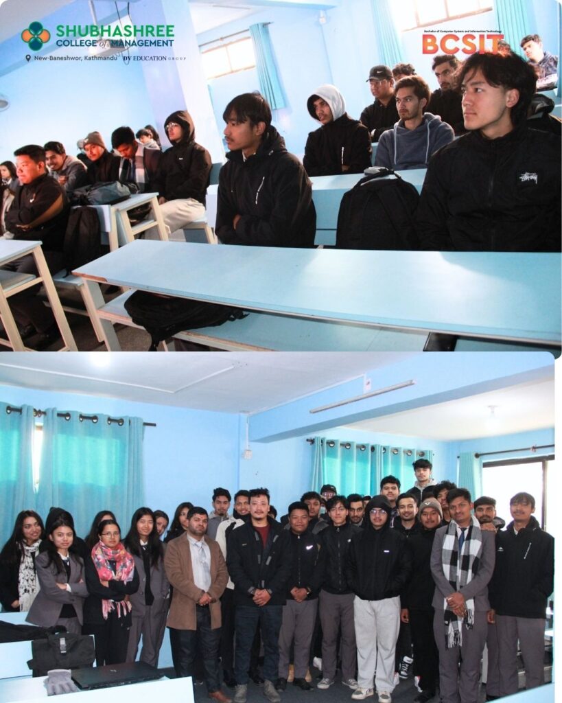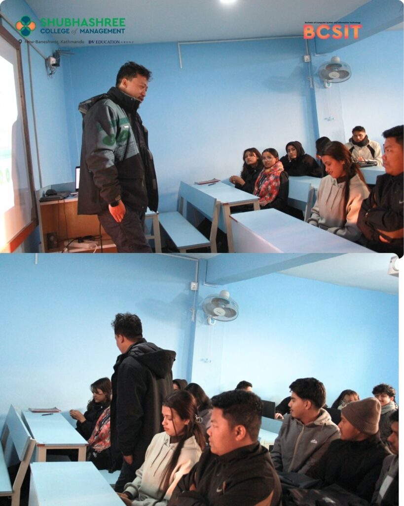 Shubhashree College organized an insightful session on Quality Assurance (QA) for BCSIT 3rd Semester students, led by Mr. Jenish Sainju. The session covered the evolution of QA, testing methodologies, industry practices, and career pathways, helping students connect academic learning with real-world technology standards.