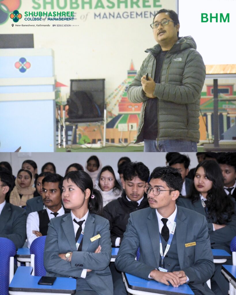 The Workshop on Research Methodology for BHM 5th Semester students was successfully conducted by Mr. Hem Krishna Shrestha, Head of Customized Research at FACTS Nepal. The session provided practical insights into research concepts, methodologies, and their applications in the hospitality industry. Through interactive discussions and real-world examples, students gained valuable skills in research design, data collection, and analysis. The workshop enhanced their critical thinking and prepared them for academic and professional growth in the field.