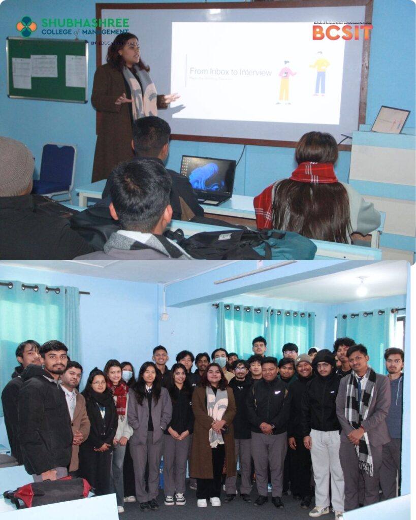 An insightful Resume Writing Session for BCSIT 3rd Semester students, led by Ms. Ayusha Bhattarai, Talent Acquisition Specialist, focusing on effective resume writing, portfolio tips for IT students, and interview preparation—bridging academic knowledge with industry expectations.